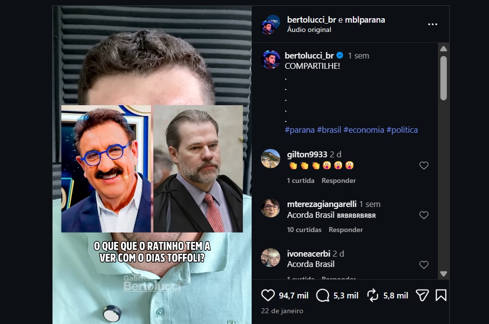 O TJ-PR negou dois pedidos de urgência para a retirada de vídeos de Bertolucci, que associam o apresentador Ratinho ao Tayayá.